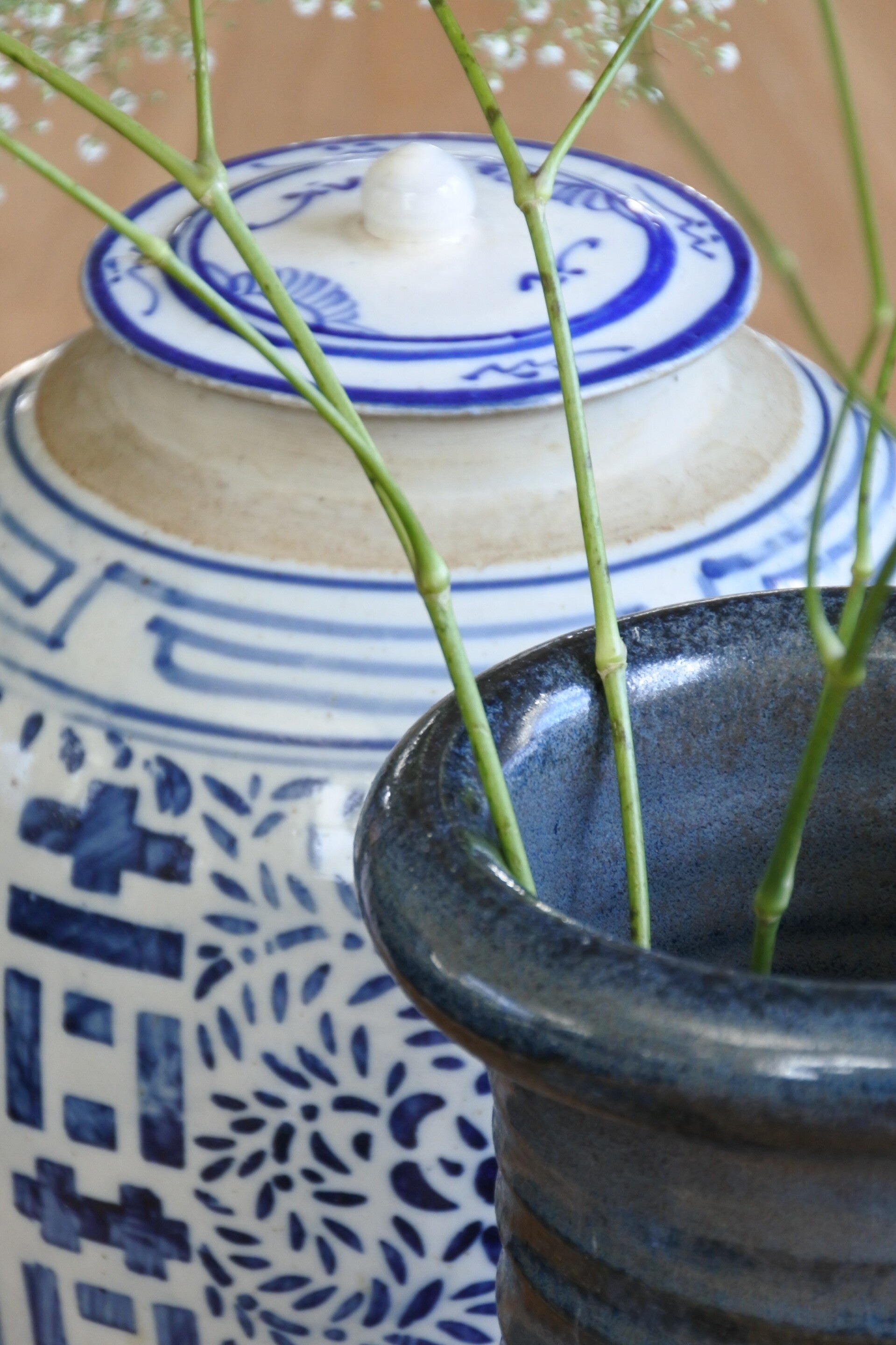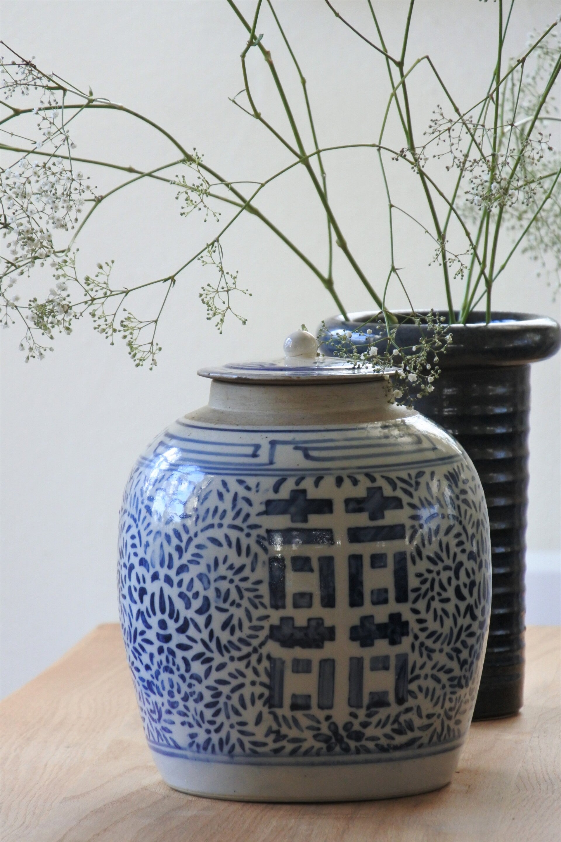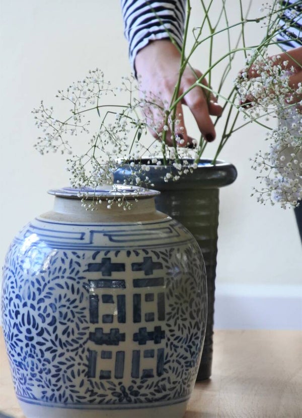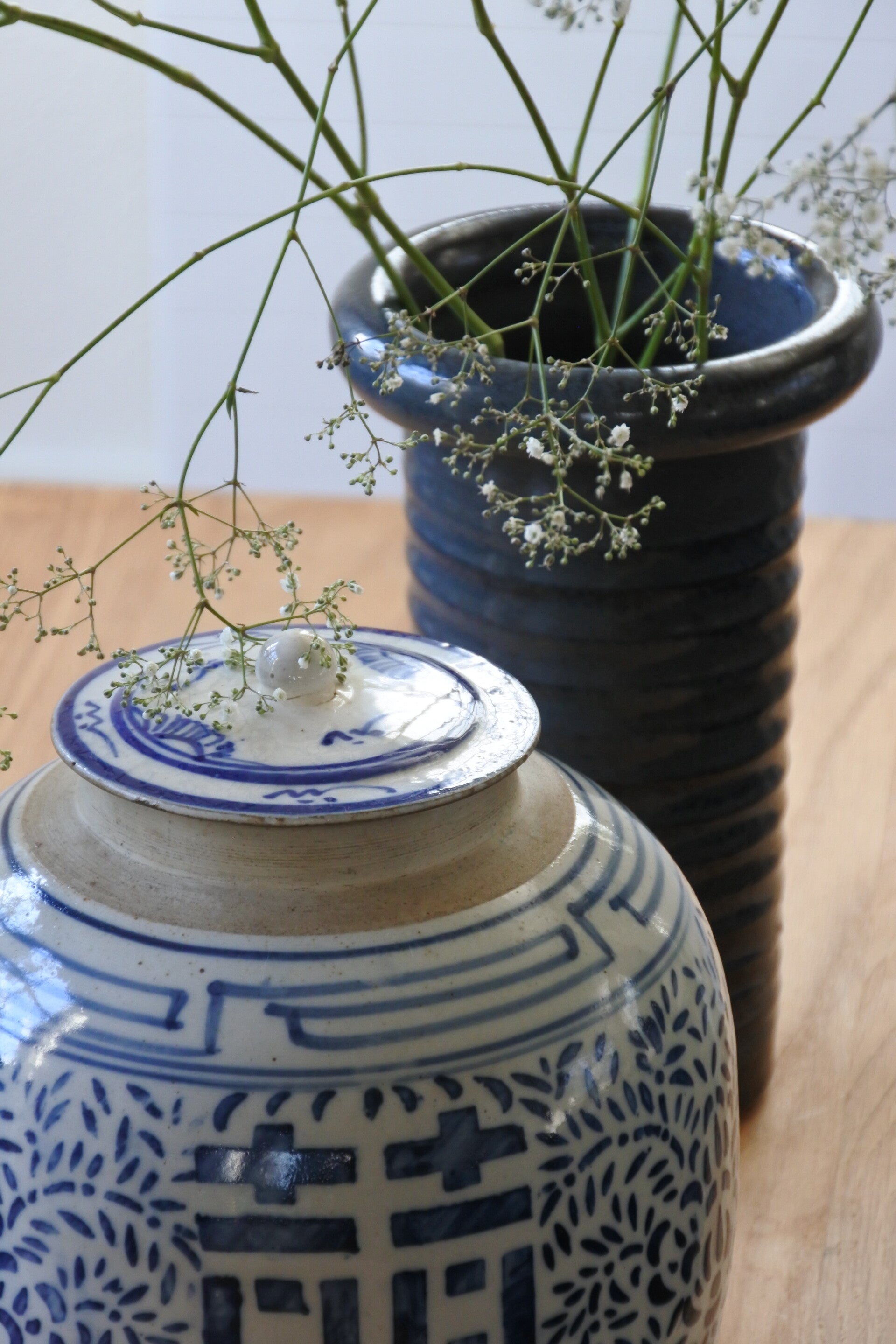 Vintage Chinese gemberpot met deksel en prachtige blauwe opdruk