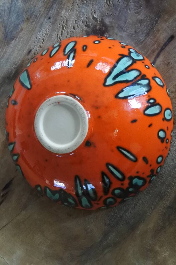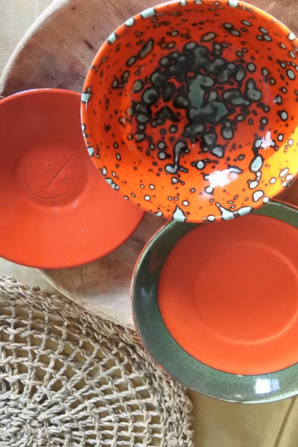 Vintage schaaltje in fris oranje met groen