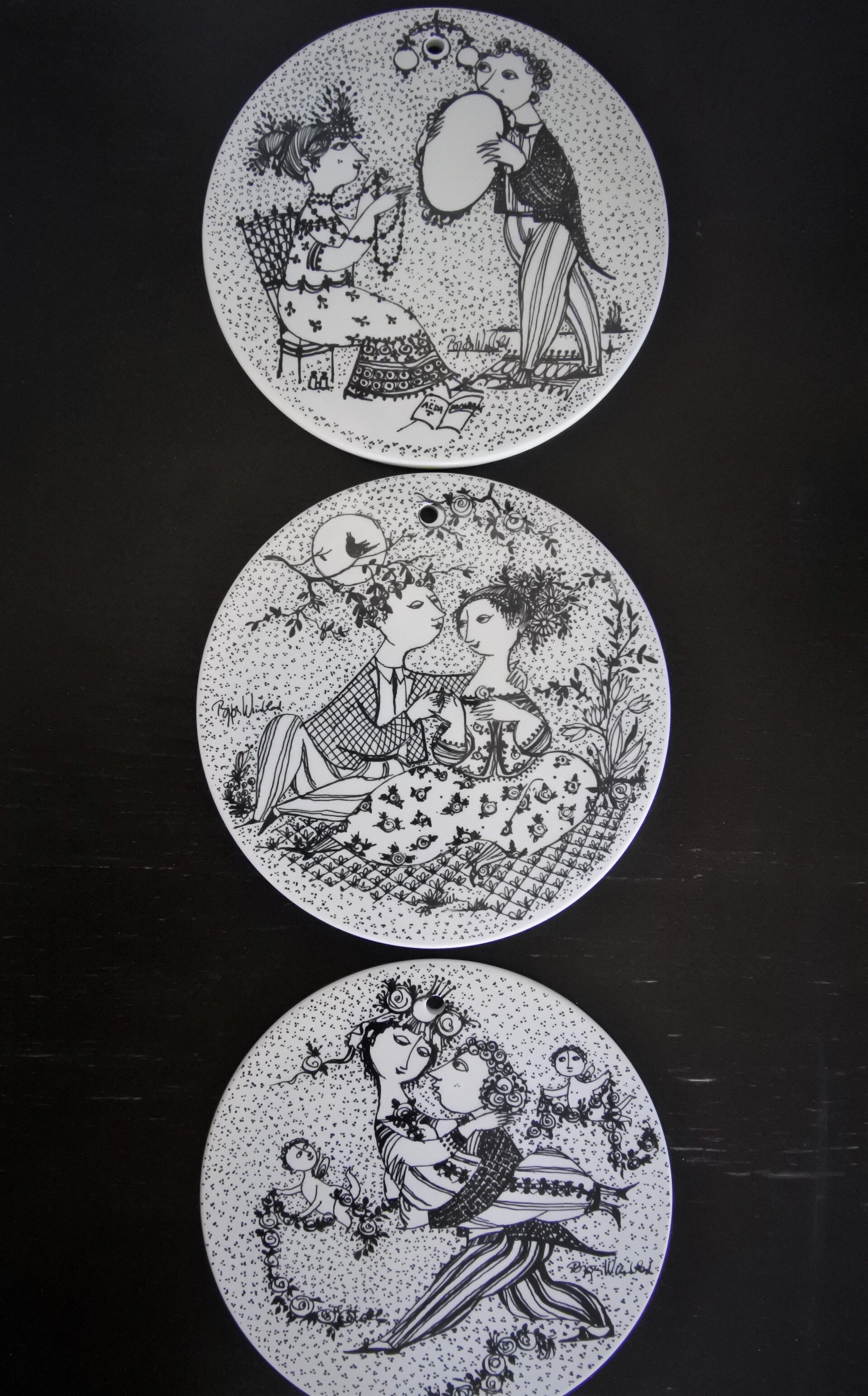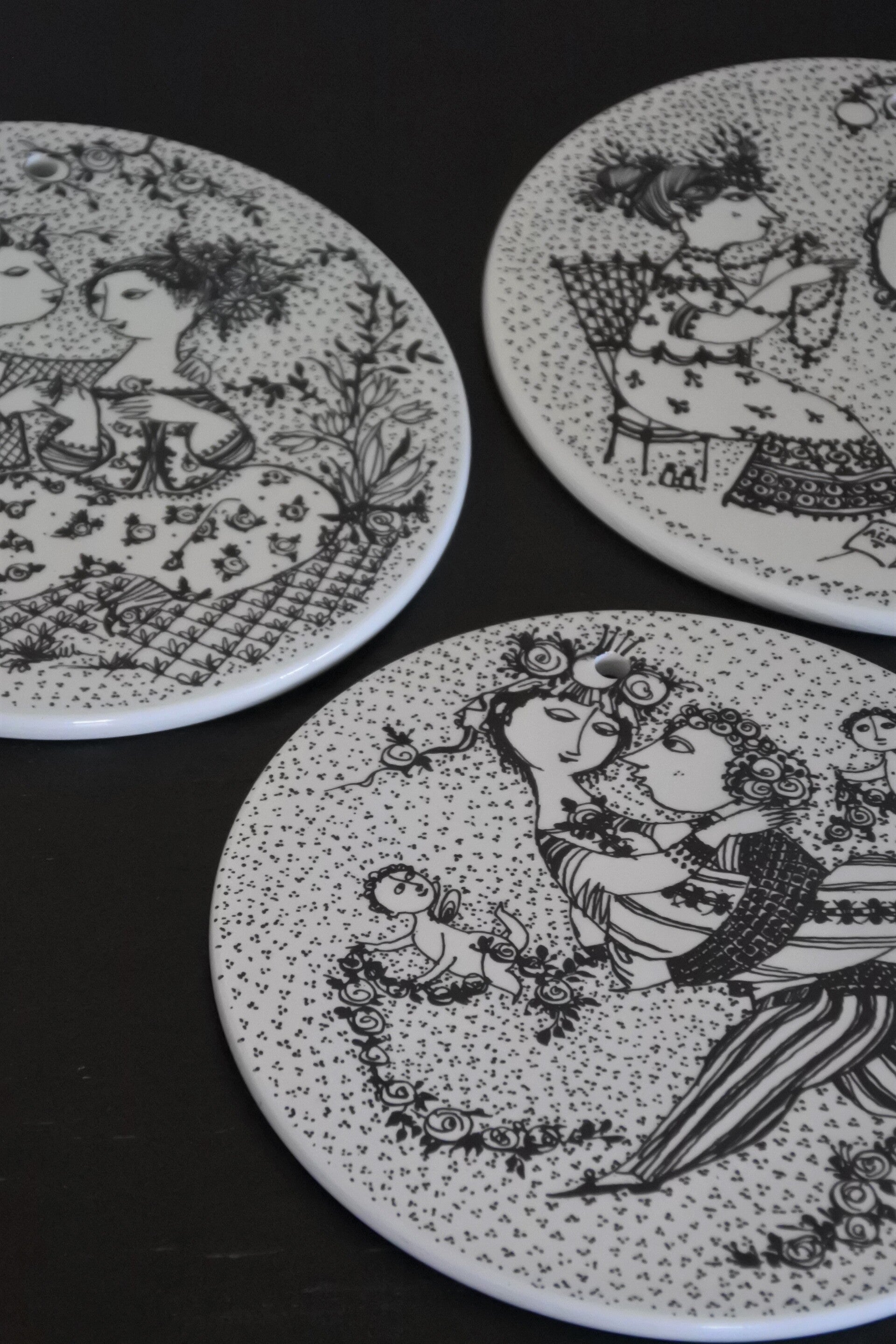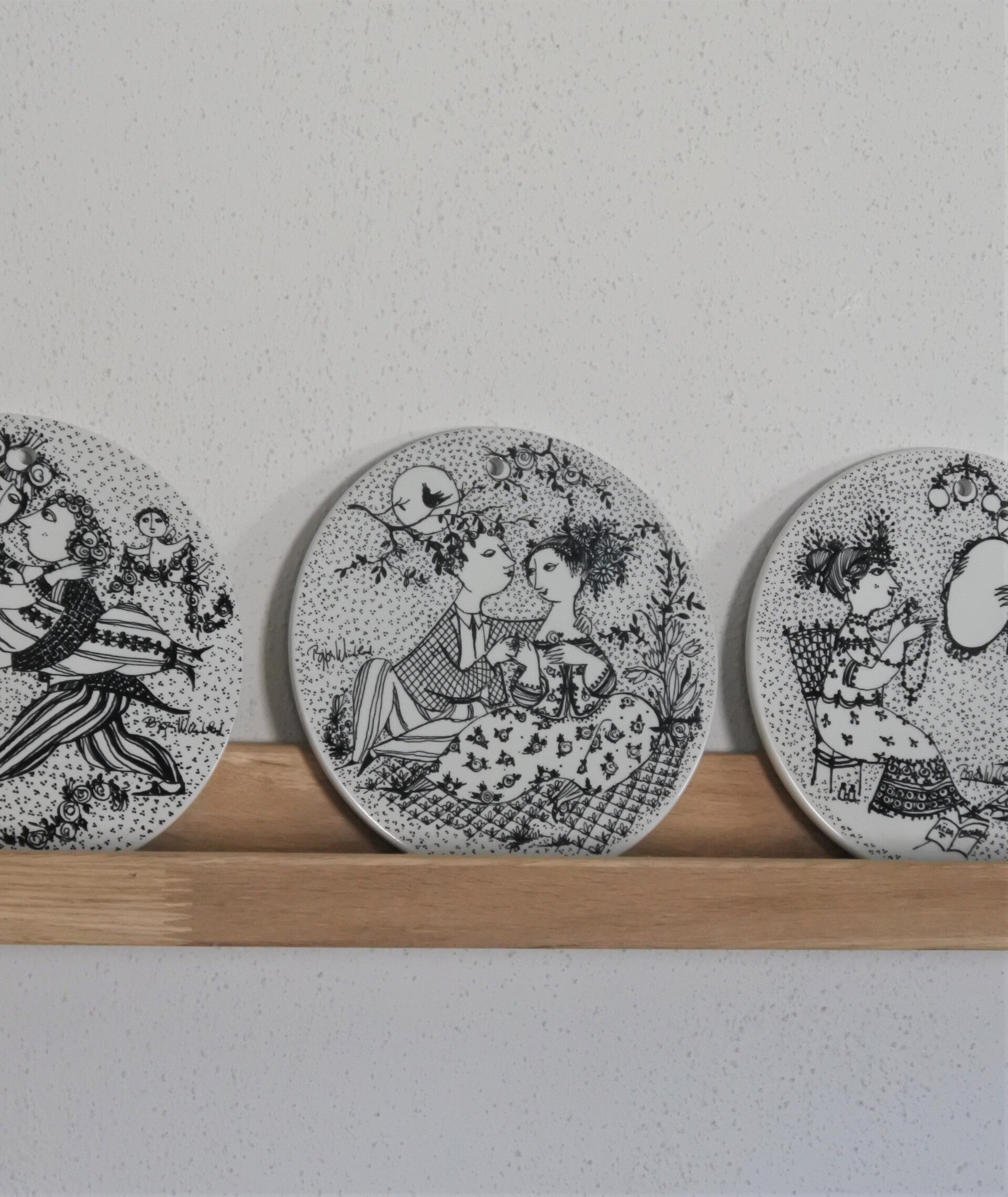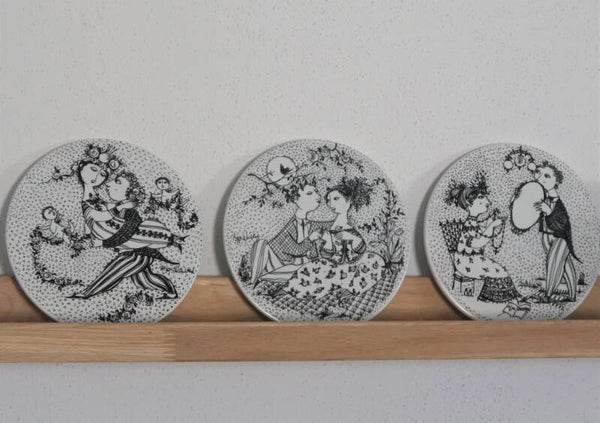 Vintage wandbordjes Months of Love van Bjørn Wiinblad, voor Nymolle Denmark, Maart - Mei - September
