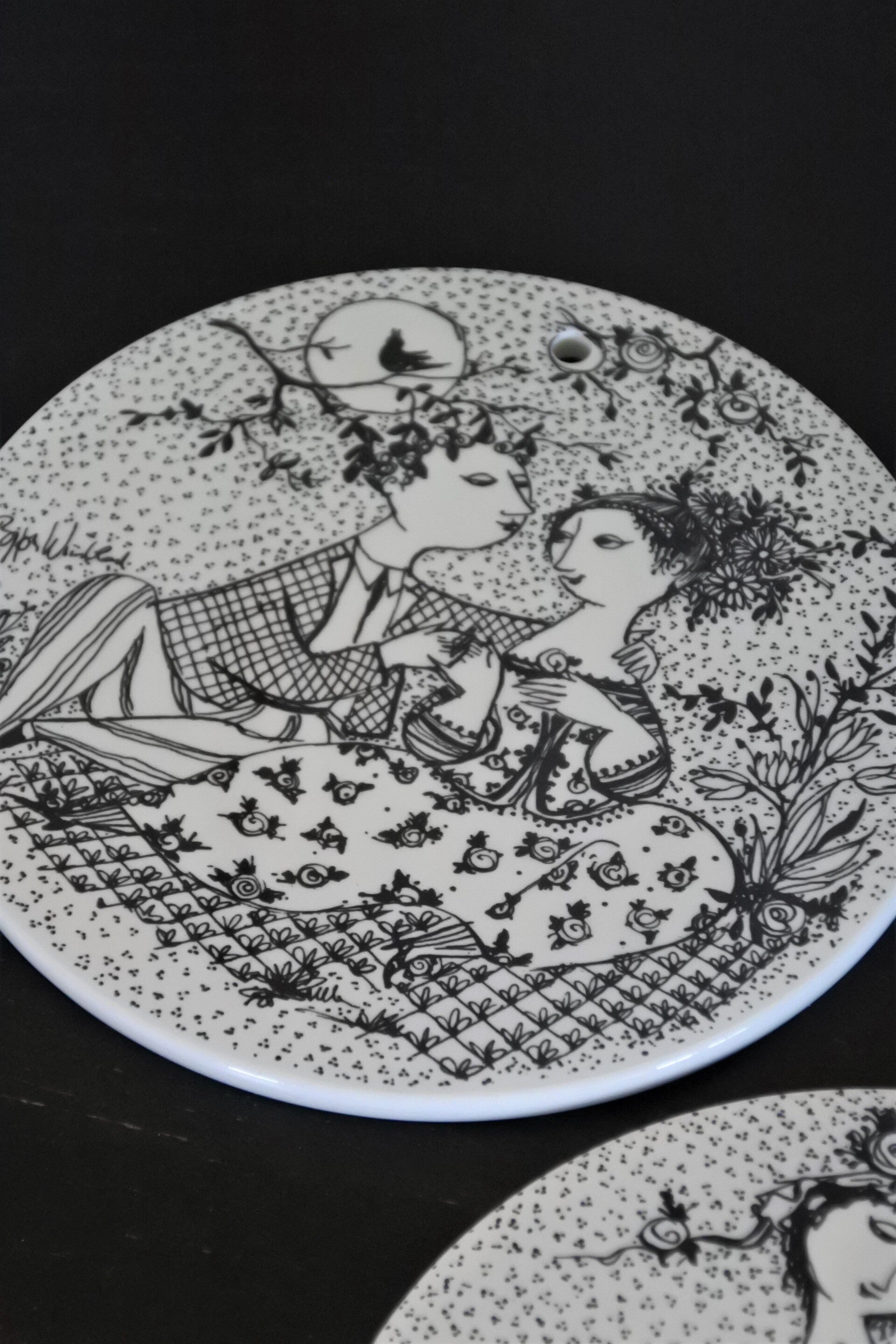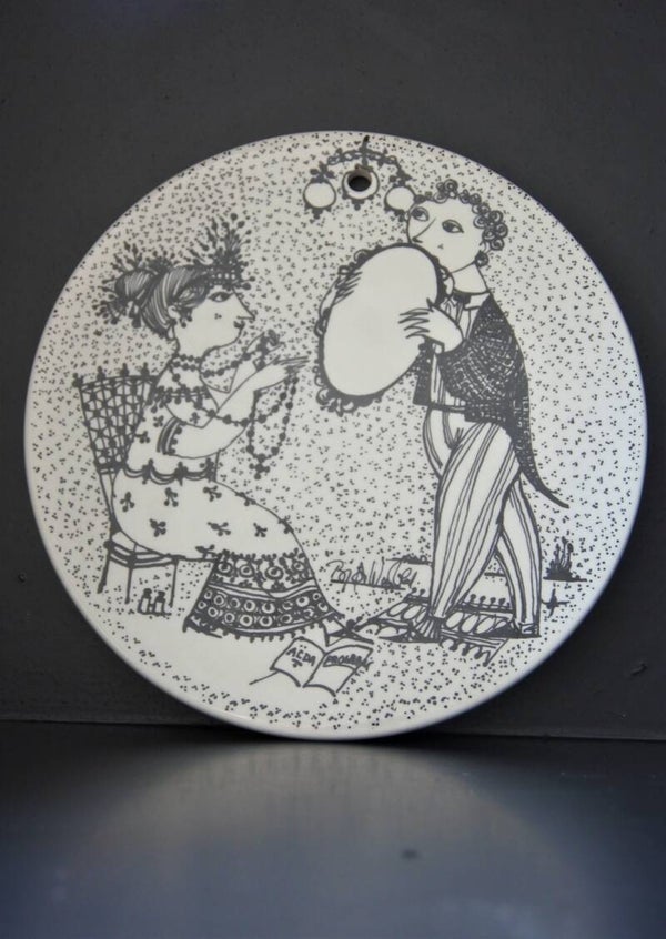 Deze waanzinnig leuke porseleinen wandbordjes uit begin 60's zijn van de beroemde Deense kunstenaar Björn Wiinblad (1918-2006) die voor deze ontwerpen werd geinspireerd door de liefde. Dit was zijn interpretatie van liefde gedurende de 12 maanden van het jaar.