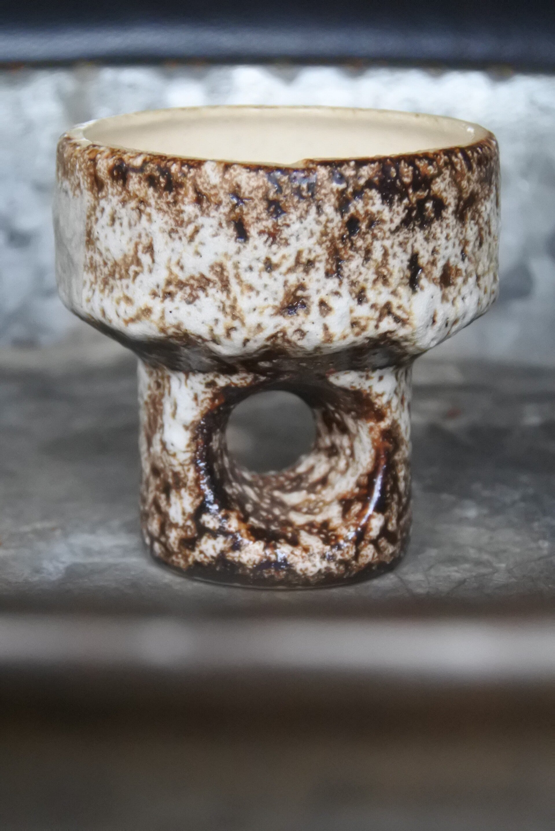 Dit mooi ontworpen fat lava potje van Vest Gouda in aardetinten. Dit item is te gebruiken als kandelaar wanneer je er een stomkaarsje in zet of als vaasje. Dit model komt uit het decor Rubens' en is in uitstekende staat.