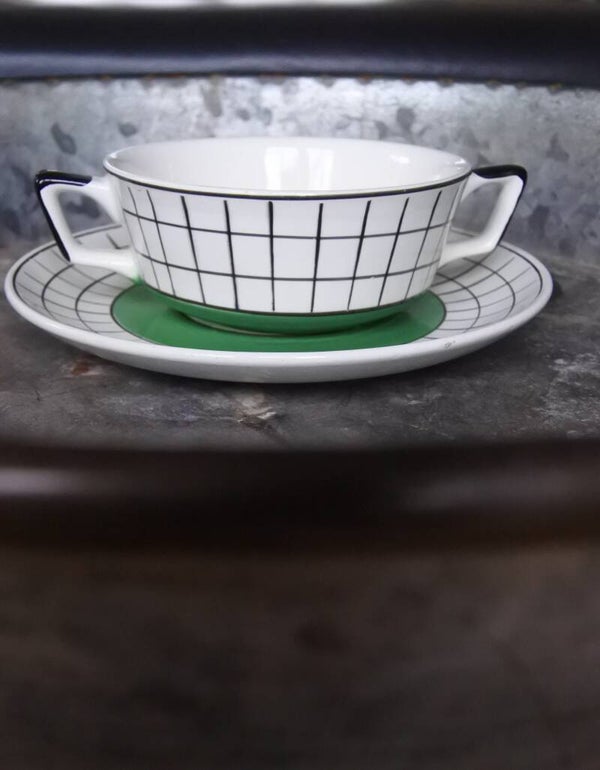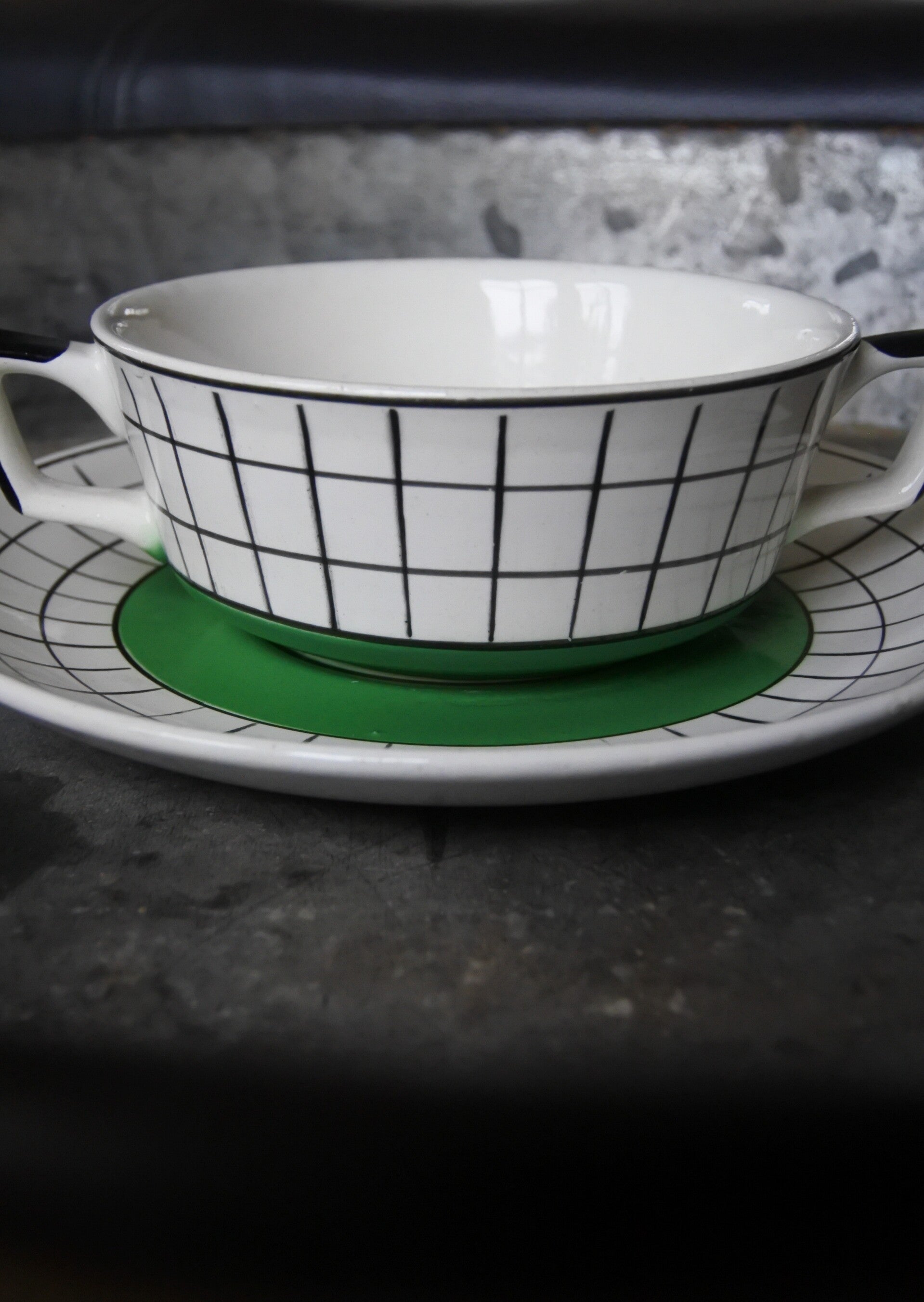 Prachtige vintage kop en schotel met modern vormgegeven design van Granit Hungary.