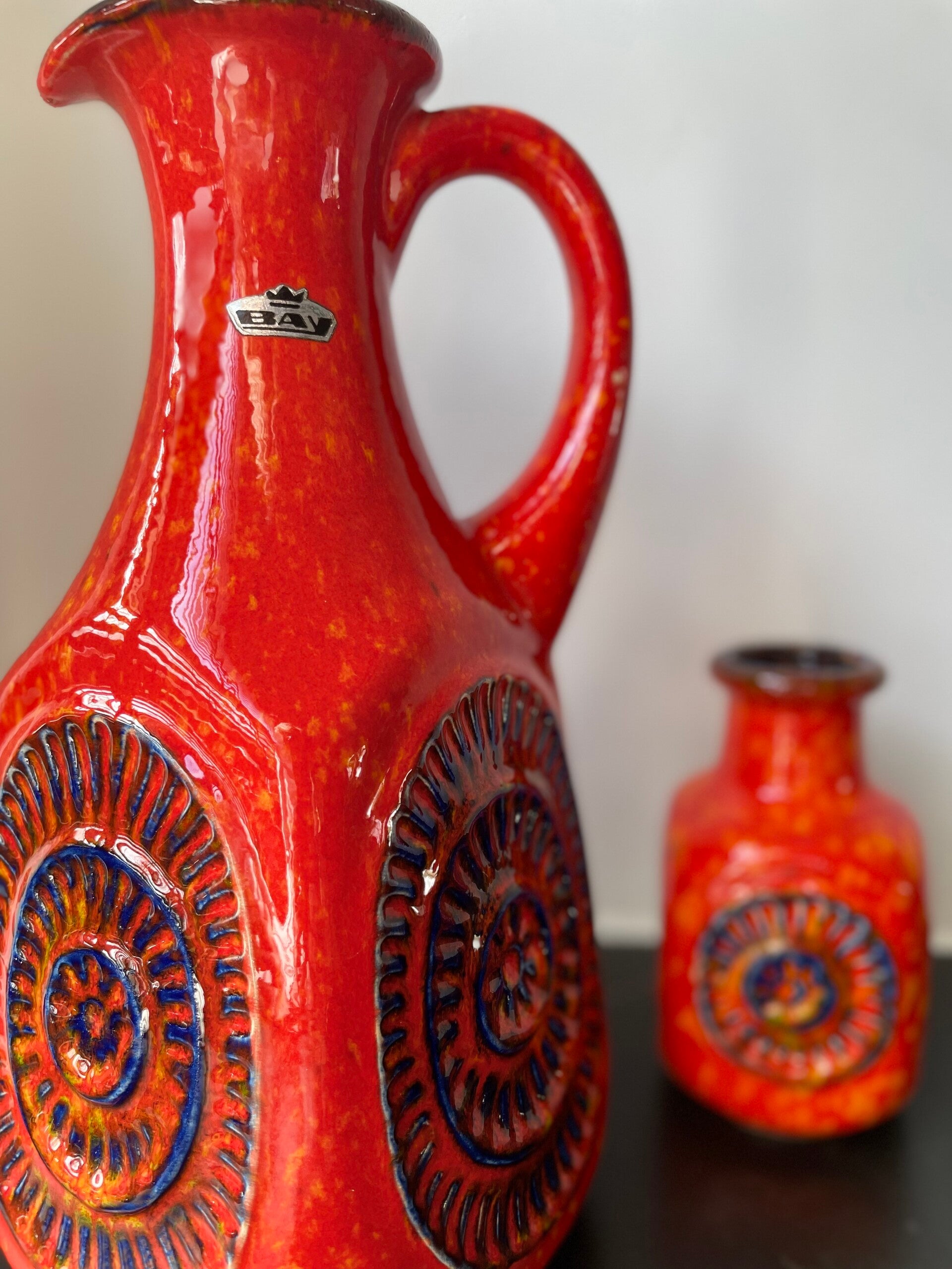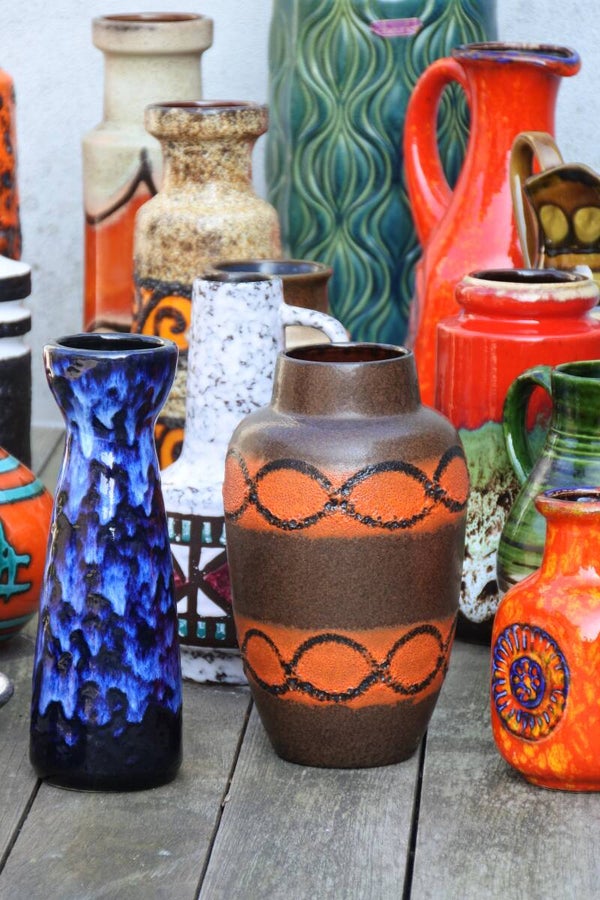 Toen we dit model uit de 70's tegenkwamen konden we maar 1 ding zeggen. WAUW. Dit is zo'n mooie knalkleur en helemaal te gek met het contrasterende blauwe patroon, dan kan je toch bijna niets anders dan dit prachtig vinden? we hebben een set want laten we eerlijk zijn.. wat is er nou mooier dan 1 Bay vaas?.. inderdaad! 2 Bay Fossil vazen. De kleinere variant shop je onderaan de pagina!
