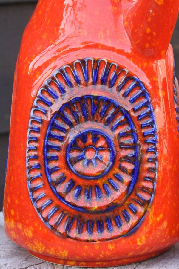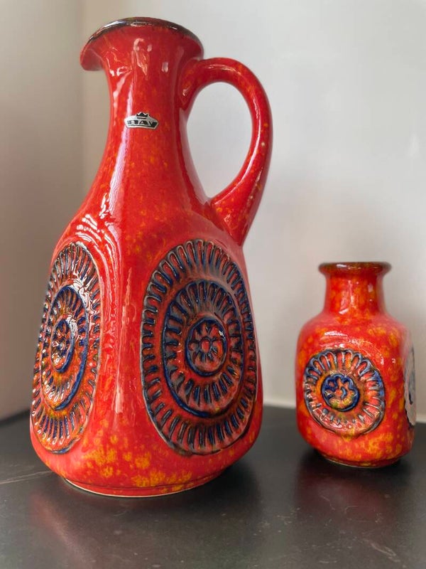 Toen we dit model uit de 70's tegenkwamen konden we maar 1 ding zeggen. WAUW. Dit is zo'n mooie knalkleur en helemaal te gek met het contrasterende blauwe patroon, dan kan je toch bijna niets anders dan dit prachtig vinden? we hebben een set want laten we eerlijk zijn.. wat is er nou mooier dan 1 Bay vaas?.. inderdaad! 2 Bay Fossil vazen. De grotere variant shop je onderaan de pagina!