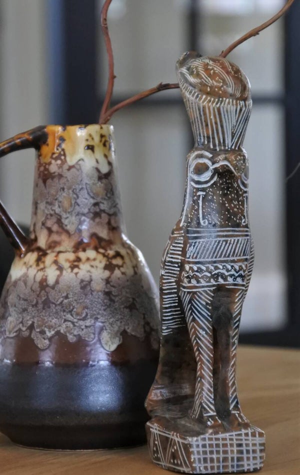Afmetingen: 15 cm h, Ø 3,5 cm bij hals, Ø 11 cm onderaan