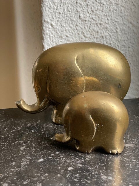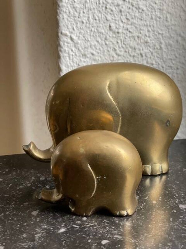 Vintage set van 2 messing Colani olifanten