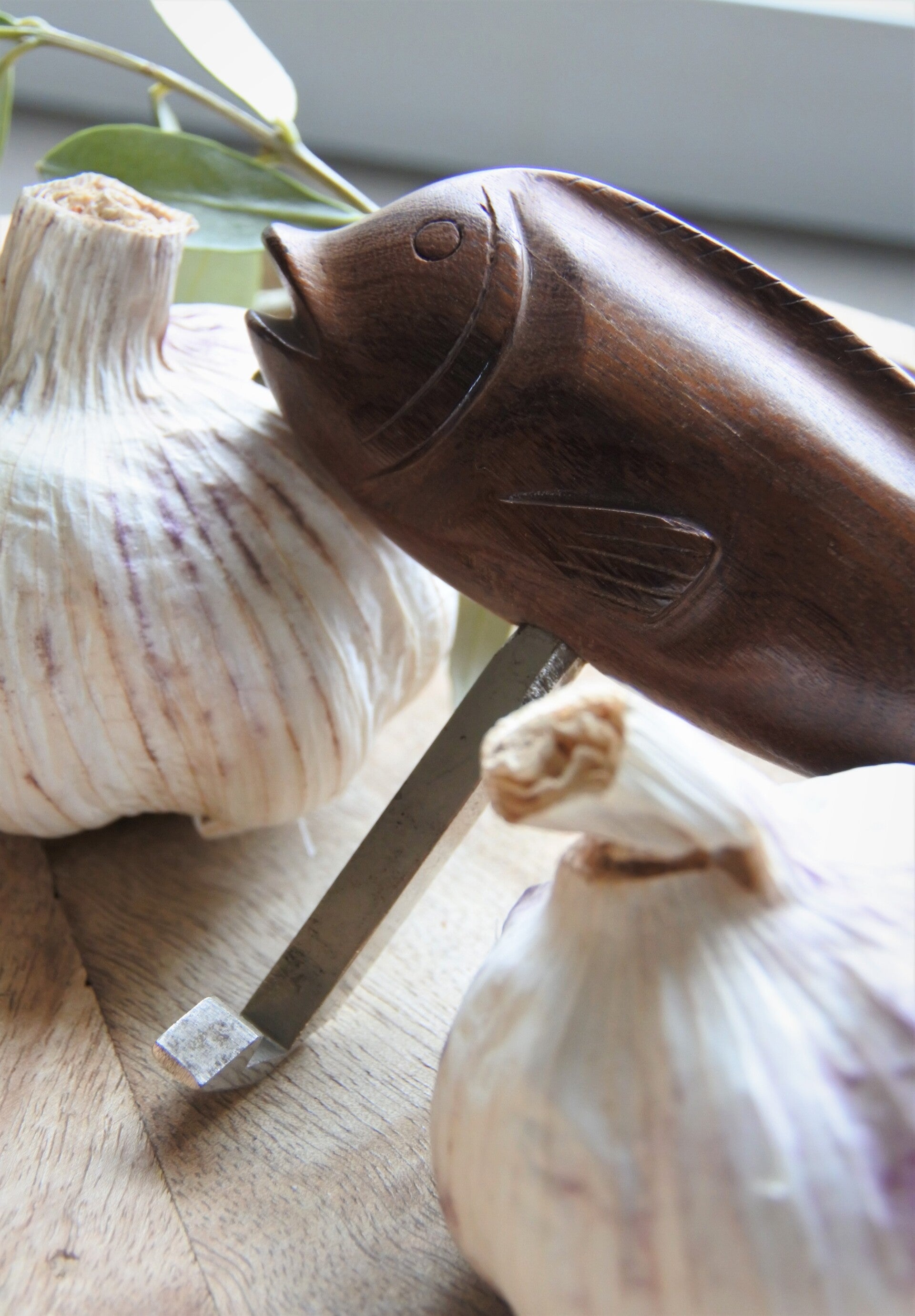 Leuk vintage teakhouten opener in de vorm van een vis.