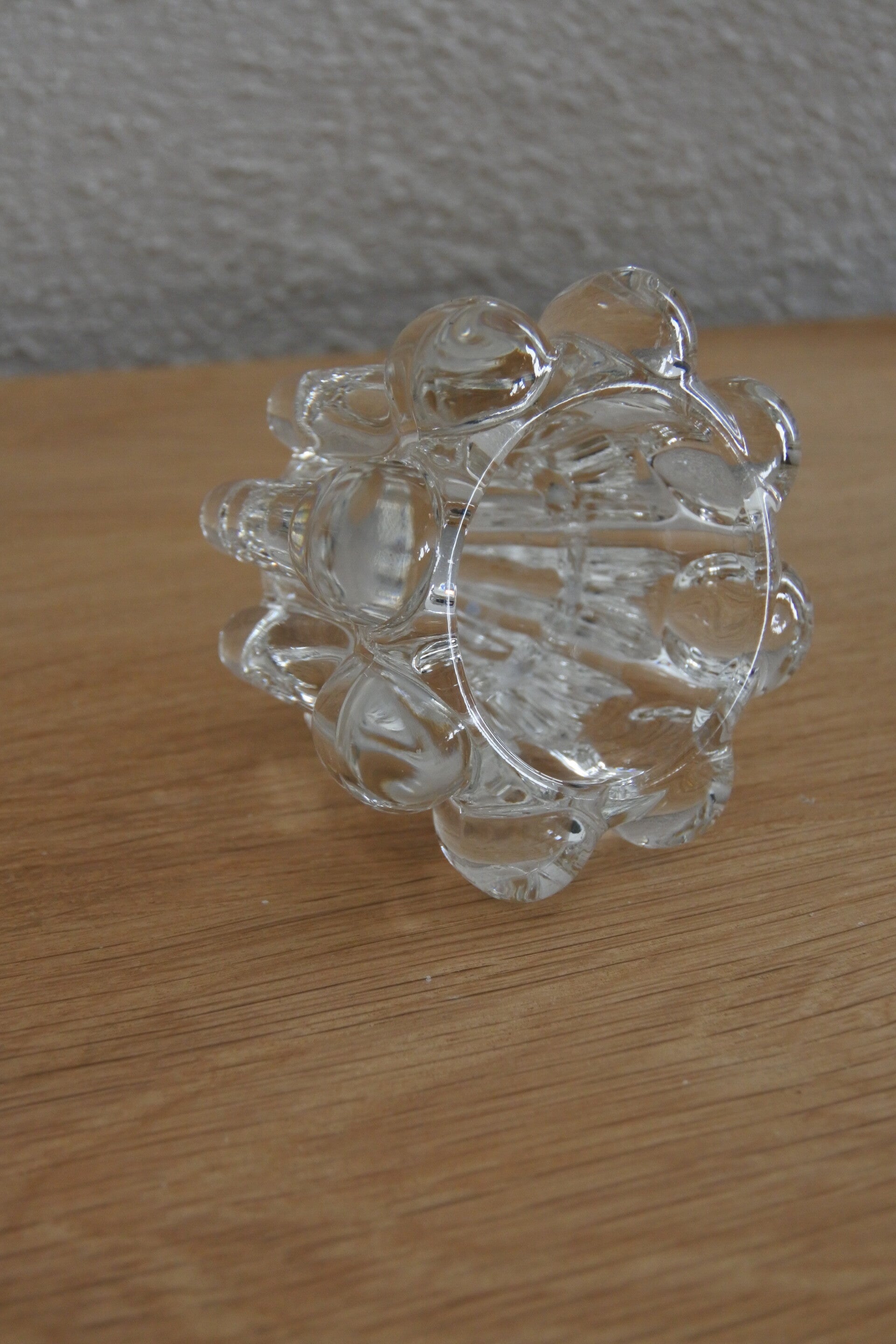 Deze prachtige kandelaar vervaardigd van persglas uit de 60's heeft een mooie bloemvorm, een speciaal 3D achtig effect en komt uit Reims, viva la France. Helemaal mooi met een modern kaarsje erin. Echt een tijdloze beauty deze kandelaar!