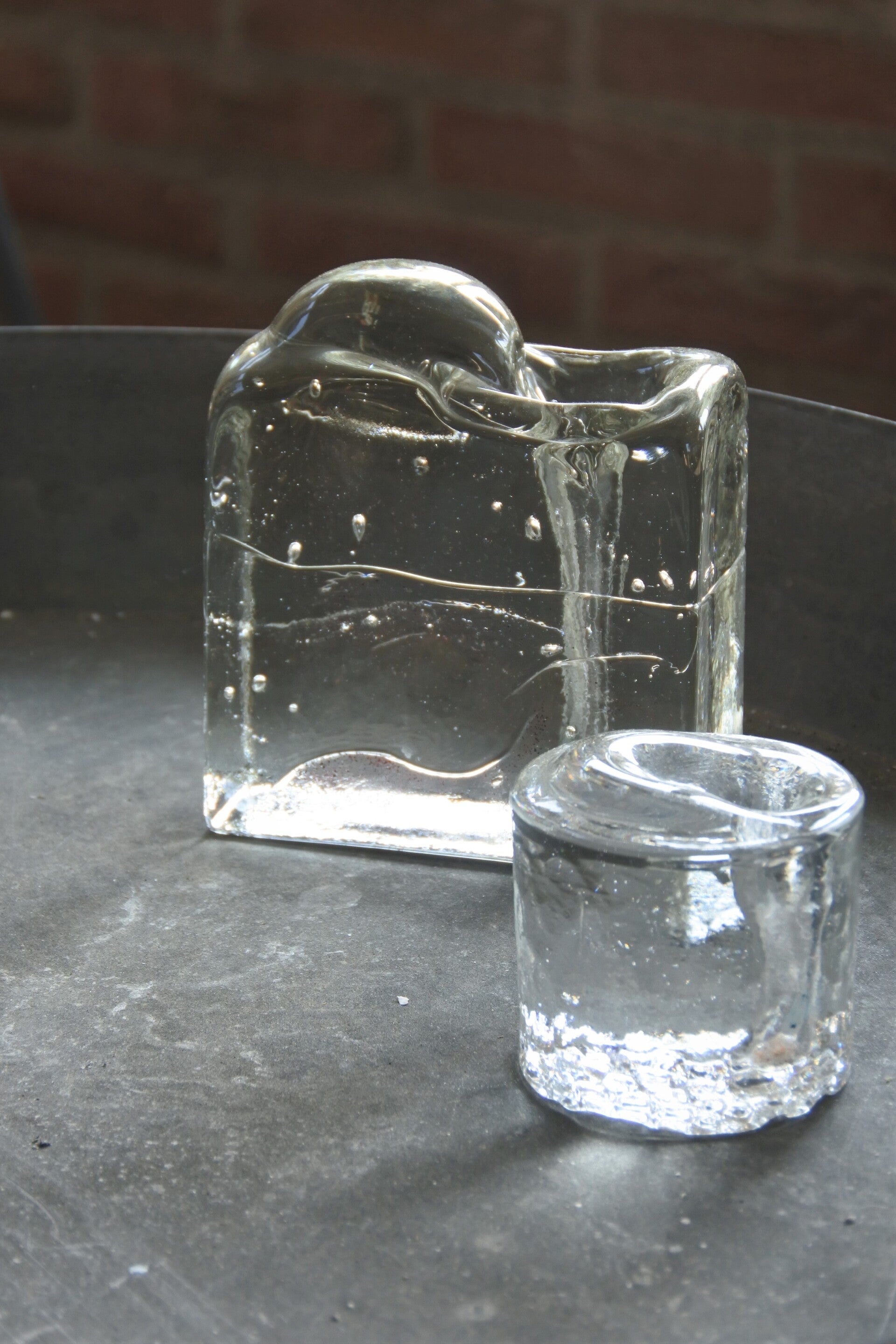 Al lijken de beide vaasjes op dezelfde designer, dit is toch niet het geval. Hoe dat zit?.. het een is design van Zweedse bodem en het ander betreft Duits design glas. 2 totaal verschillende designers, een ander land en een andere periode maar toch staan ze prachtig bij elkaar als set!
