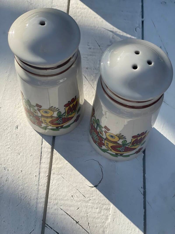 Leuke vintage peper en zout strooier van het Koreaanse ANY met hierop een afbeelding van kuikens in geel, bruin en groen. sorry, zei je daar nou Korea? Dit setje oogt inderdaad super Scandinavisch maar stamt al uit de jaren zeventig en is dus all the way from Korea. Het werd destijds verkocht bij de goede oude Vroom en Dreesman. Aaah brings back memories toch?