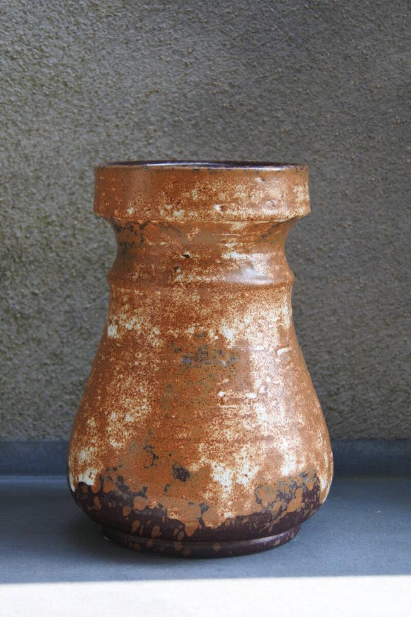 Prachtige vintage West Germany vaas in bruin en caramelkleur met een fatlava 'swirl' in zachte koffietinten.