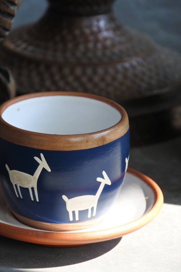 Vintage handgemaakte kop en schotel Jatum Maqui Peru
