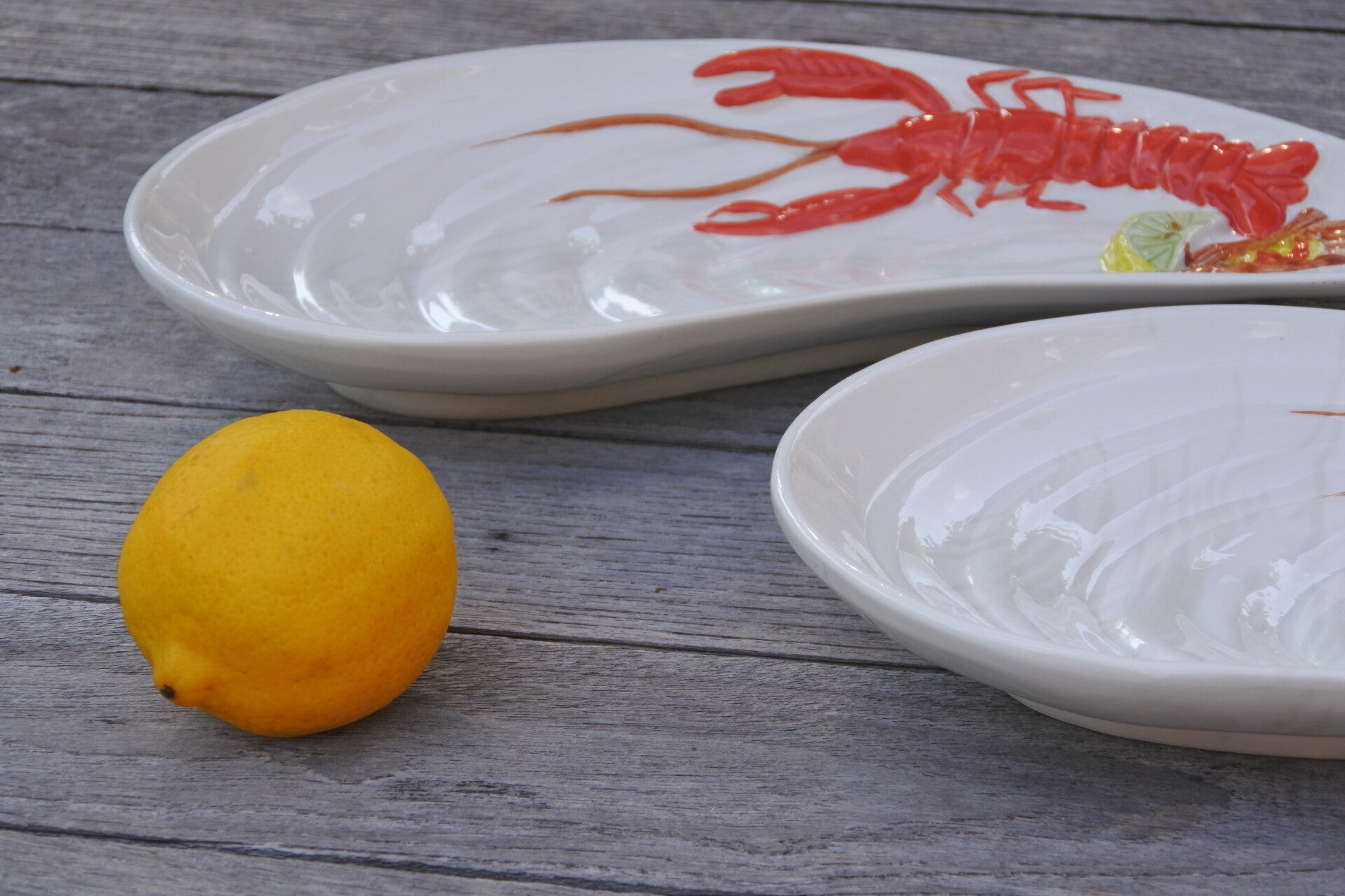 Mooie set van 2 Italiaanse schalen voor het serveren van kreeft. Of langoustines. Of qocuilles, of.. of.. wat jij maar lekker vind!
