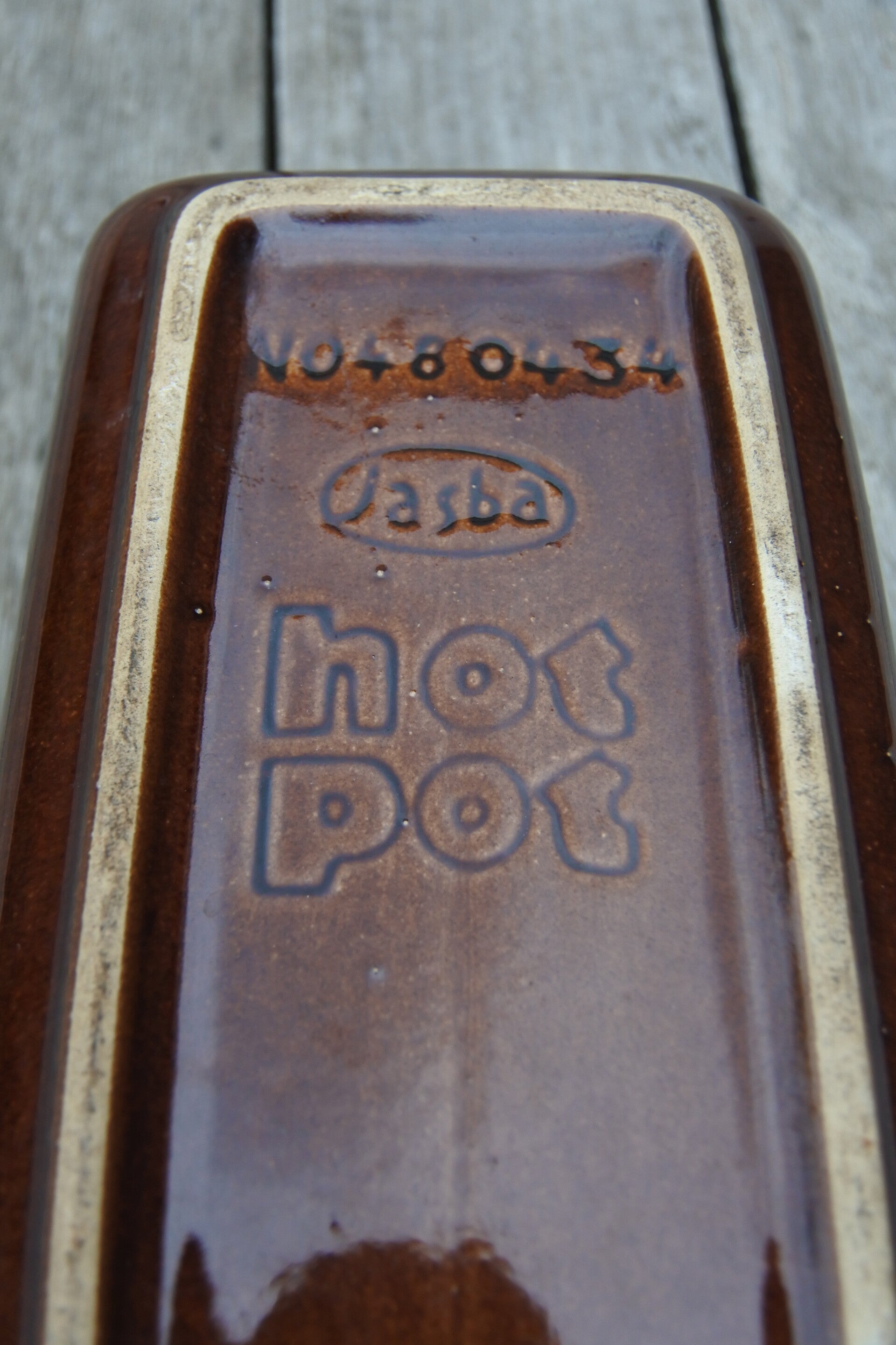 Prachtige schaal van Jasba West Germany uit de 60/70's. Deze schaal.. of eigenlijk hotpot, heeft een mooie koffiekleur en fatlava effect voor een goede dosis funkyness. Als dat geen tof gerecht wordt uit deze schaal!