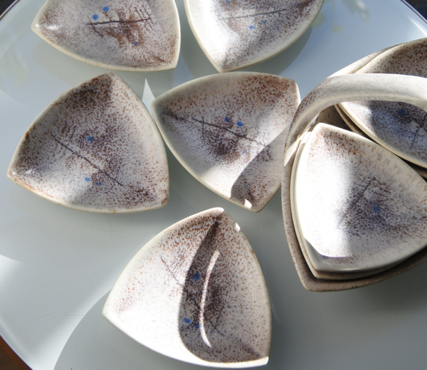Antieke jaren 30 petit fours set Dek 256 Margarete Weiss voor Keramikfabriken Neuhaldensleben Duitsland
