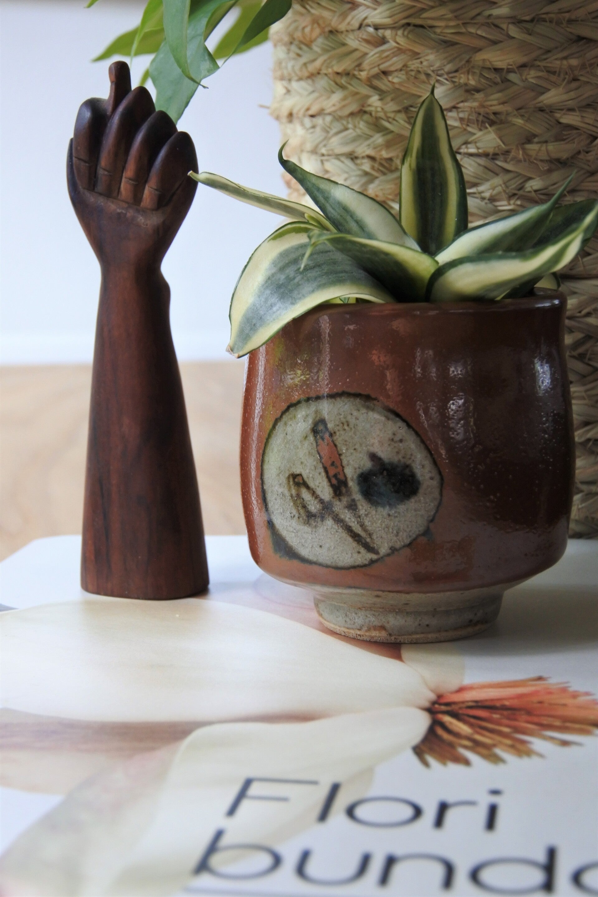 Dit kopje (of potje) trok pas geleden onze aandacht en dat we het mooi vonden, dat was direct duidelijk! maar wat was het nou precies? een kopje, vaasje of bloempotje? na lang zoeken kregen we eindelijk ons verlossende antwoord; een Japanse Yunomi cup! oftewel een theekopje. Correctie: Het al-ler-mooi-ste theekopje die we ooit hebben gezien in ons leven, want dat is deze serene schone zeker! en duur dat ook, want deze koppen zijn als complete set van 2 goud waard!. Aan die gekkigheid doen wij echter niet mee want anders krijg je nooit de kans om een echte Yunomi cup eigenaar te worden toch?