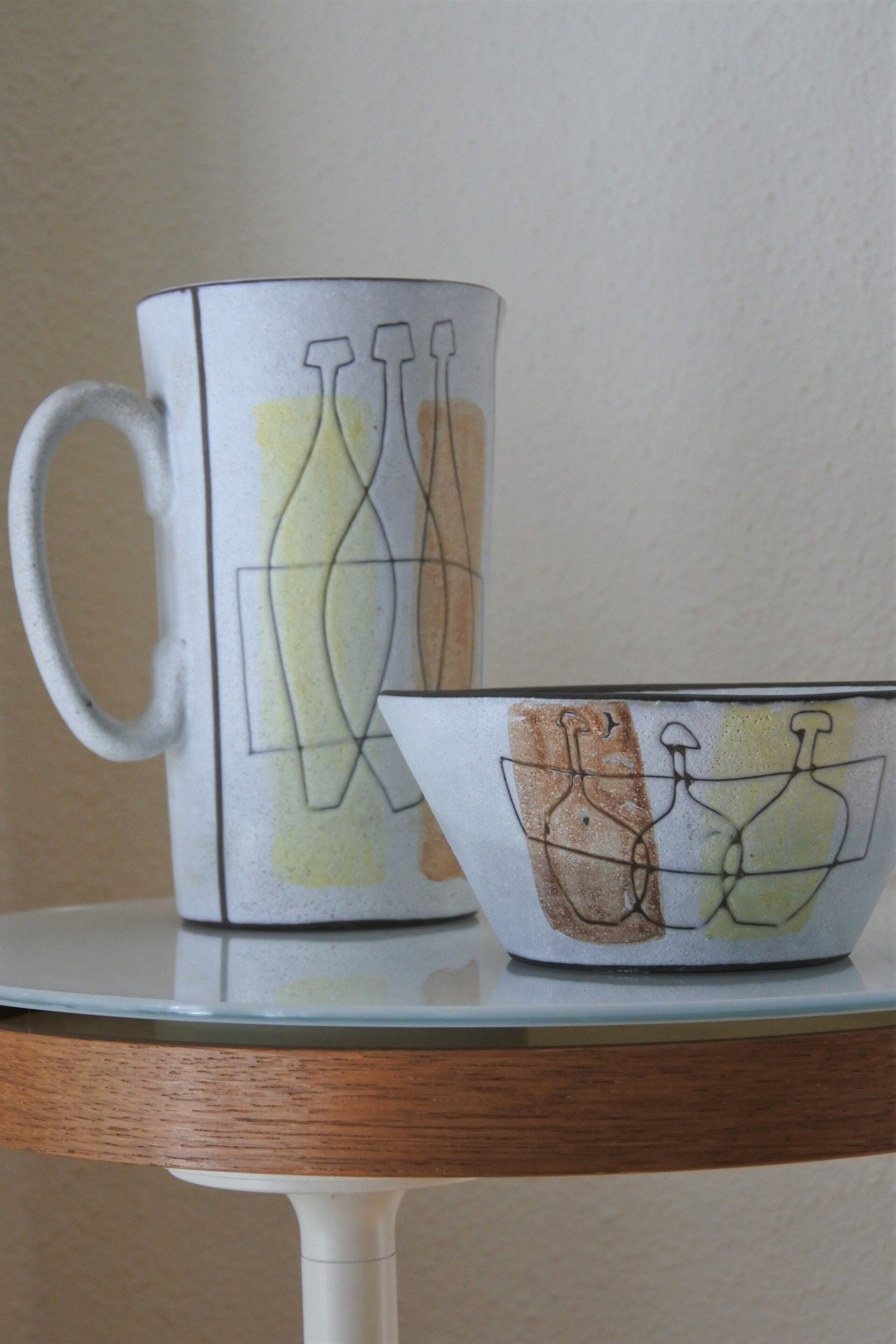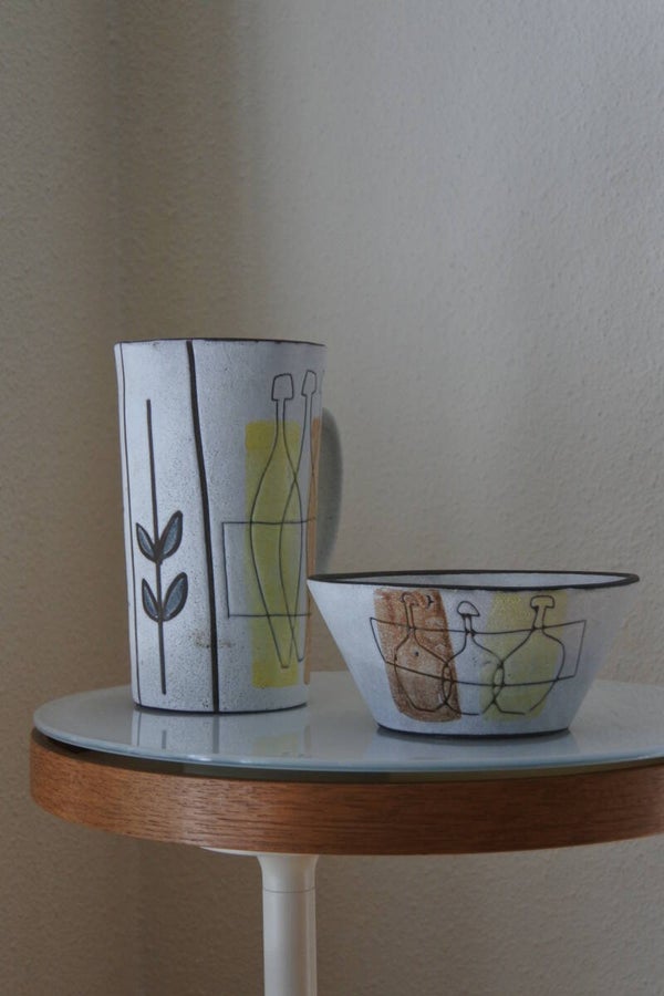 Vintage Dutch design Pottery kan en schaal van Potterie Werkhooven -Holland
