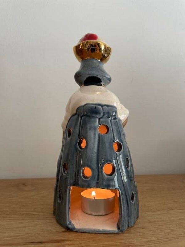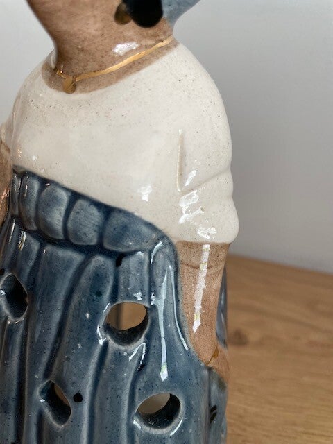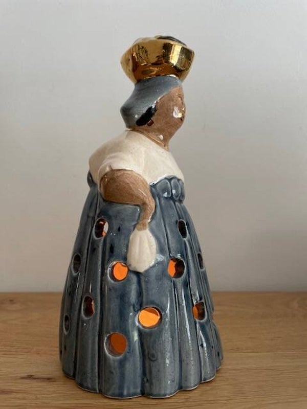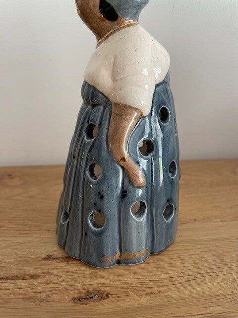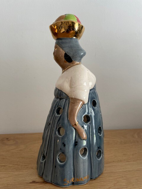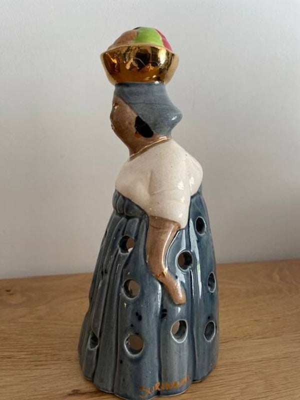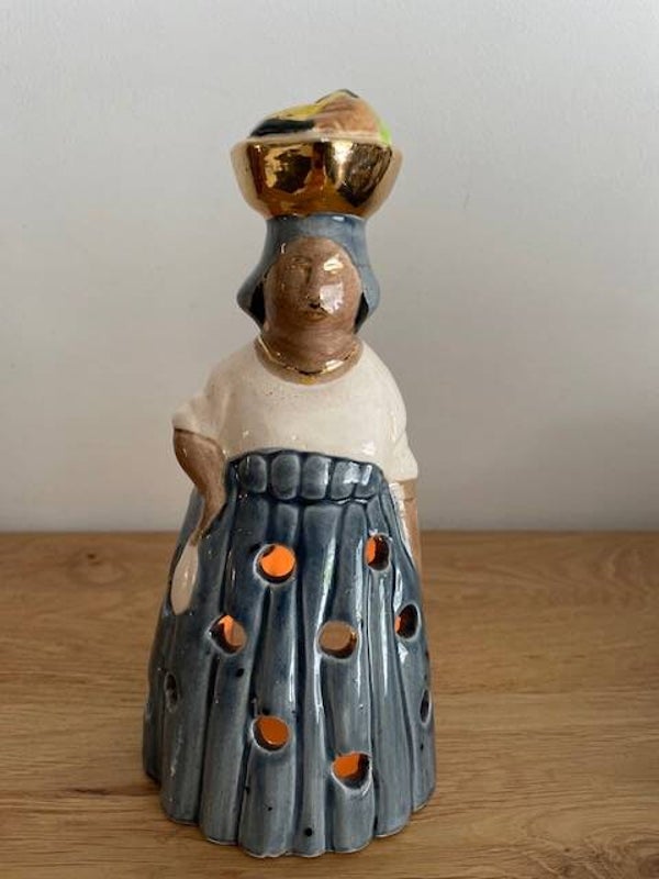 Su,su,su, surri-naa-mee... als wij naar deze ontzettend mooie mevrouw kijken krijgen we direct dit liedje in onze hoofd (en vervolgens uren er niet meer uit). Deze mooie keramische waxinelichthouder is handbeschilderd in heldere kleuren, heeft ronde uitsparingen voor een mooi lichteffect en gouden bladverf details. Dit is nou echt een leuk en apart stuk in je interieur! en ook heel leuk.. deze is on-vind-baar op het internet, dus dan weet je wel dat je echt iets unieks in huis hebt gehaald!