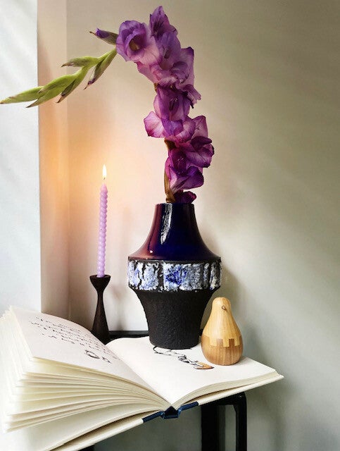 Over het design; de vaas heeft een futuristisch design en is bijna buitenaards mooi met zijn prachtige blauwe kleurnuances. Het model heeft de juiste combinatie tussen gladde en robuuste structuren want bijna het mooiste detail van alles: de prachtige bruisglazuur band.
