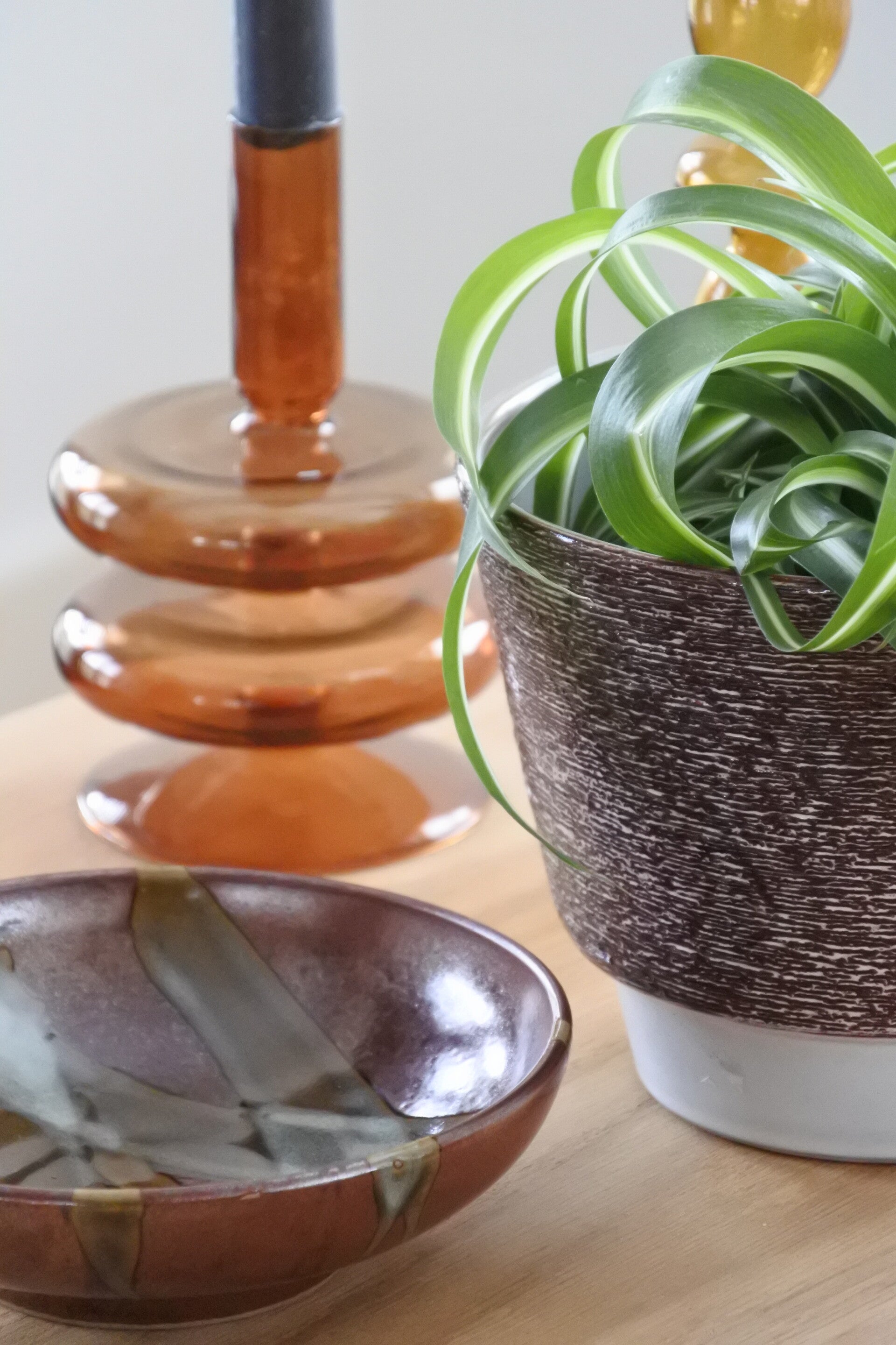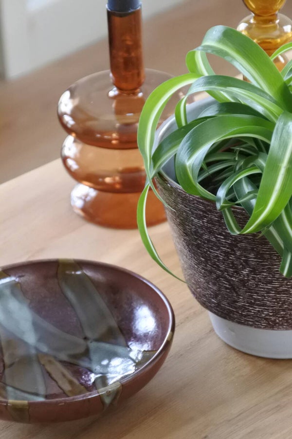 Prachtige vintage bloempot van ADCO (Groningse Steenfabrieken N.V.). In de jaren '30 werd aardewerk vervaardigd onder de naam ADCO. De produktie bestond vrijwel geheel uit bloemenvazen naar eenvoudige, doordachte en eenkleurige ontwerpen. De fabriek heeft bestaan van 1904 tot 1977.