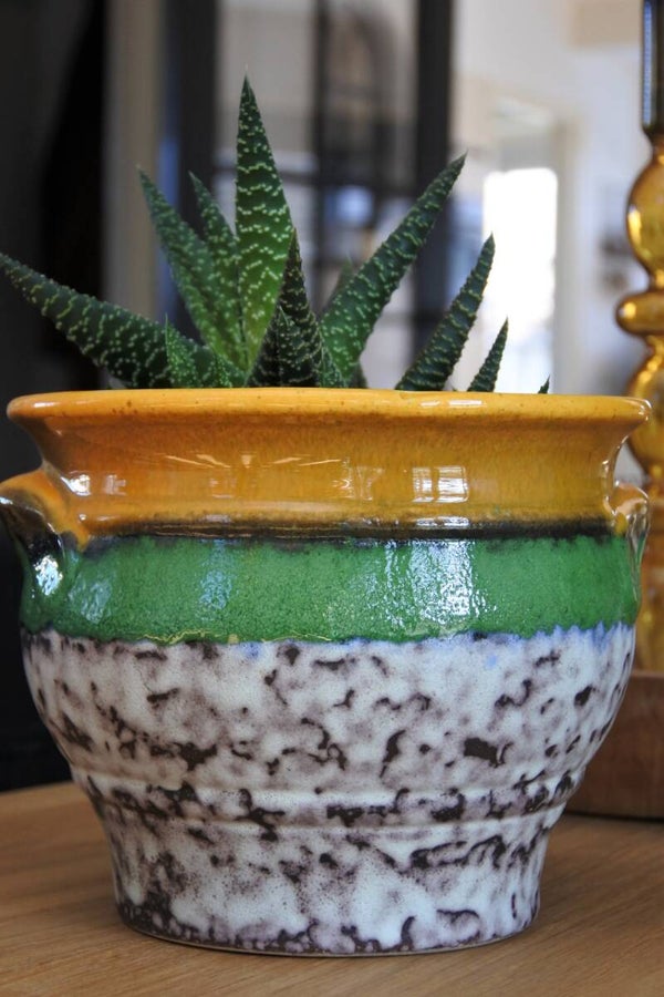 Mooie vintage West Germany bloempot van keramiek. Correctie; funky keramiek! want deze funky jongen is geen muurbloemp(ot)je te noemen.