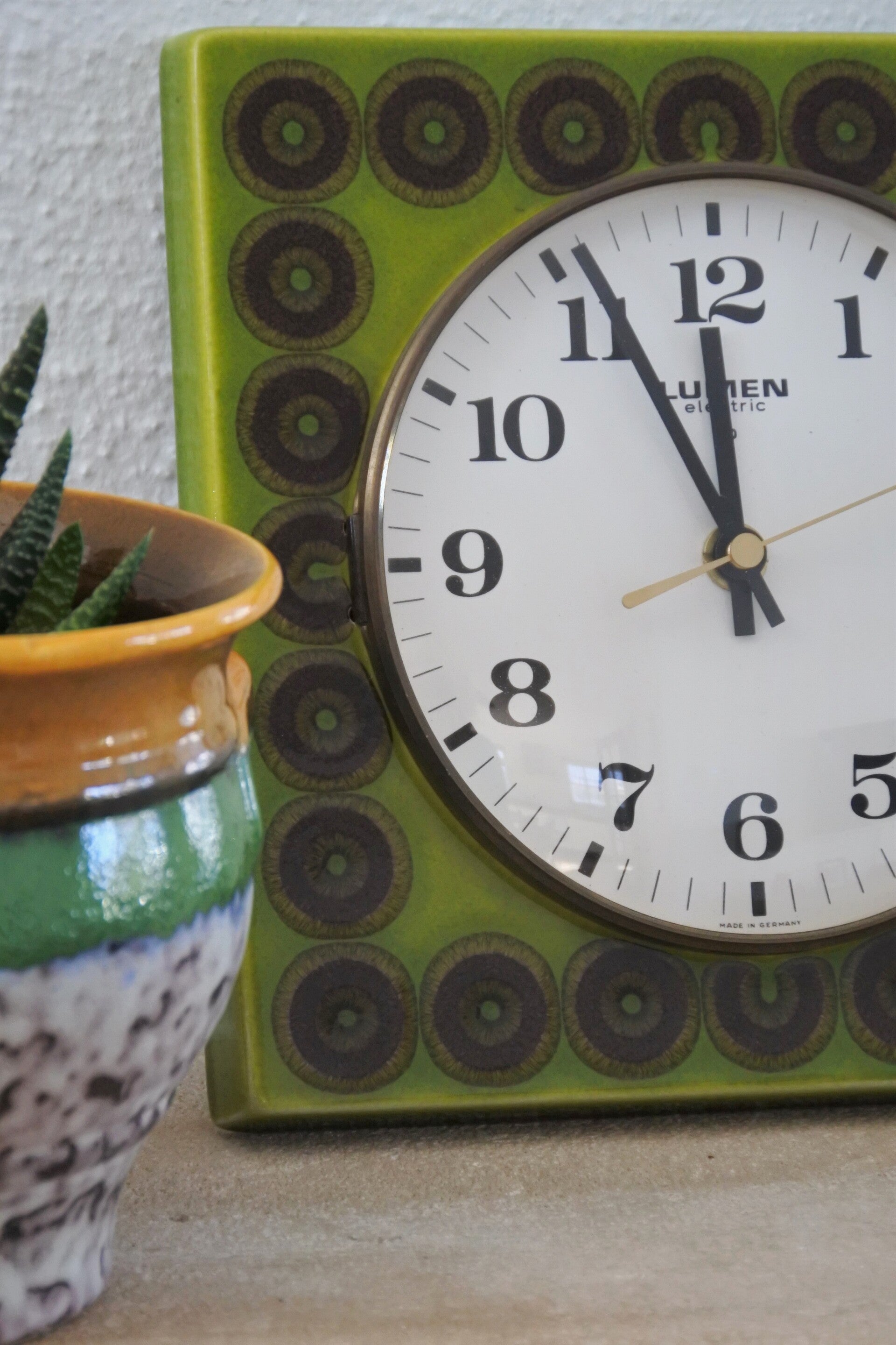 Vintage wandklok van prachtig keramiek Lumen Electric, Made in Germany